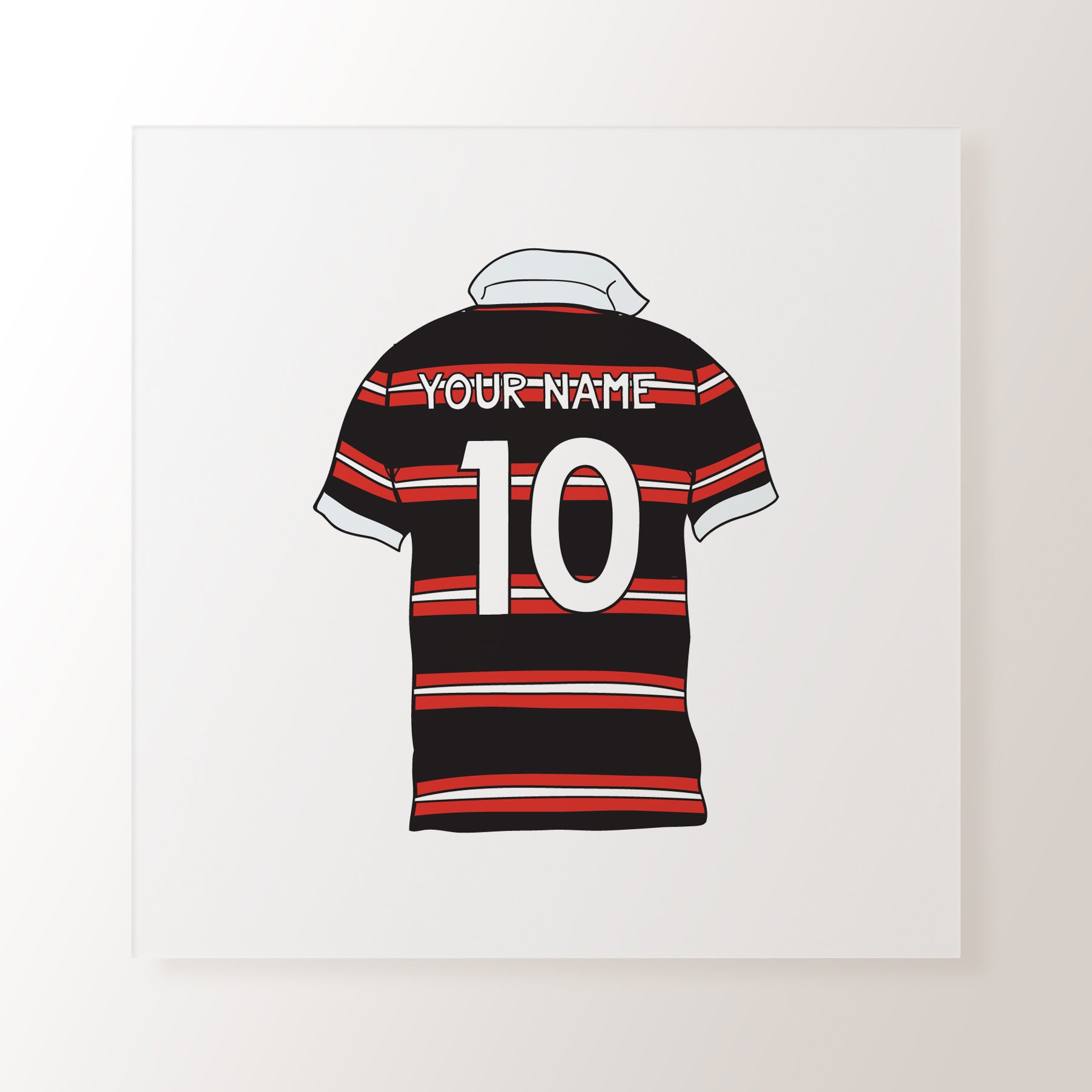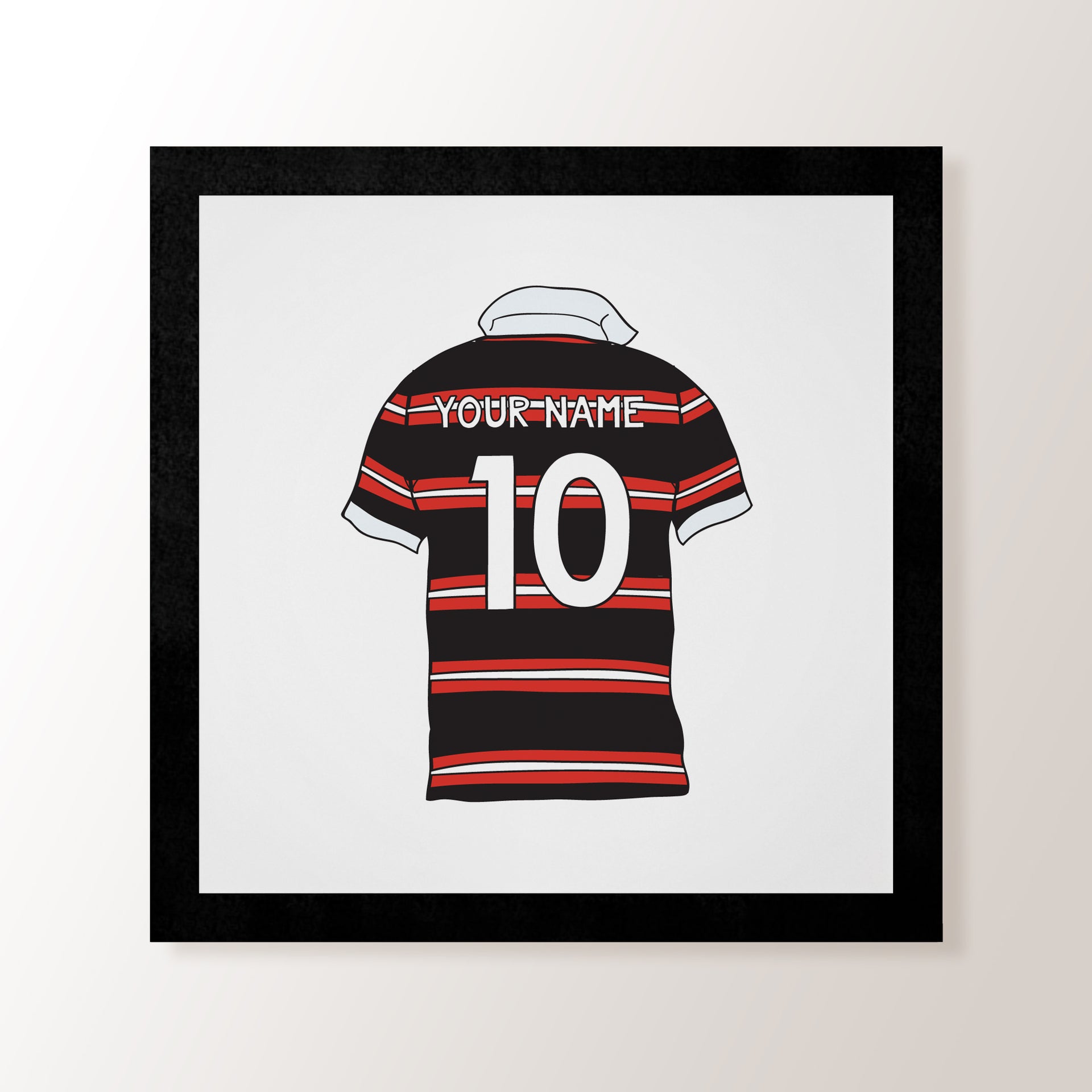 Personalised Rugby Shirt Black & Red Stripes - Art Print