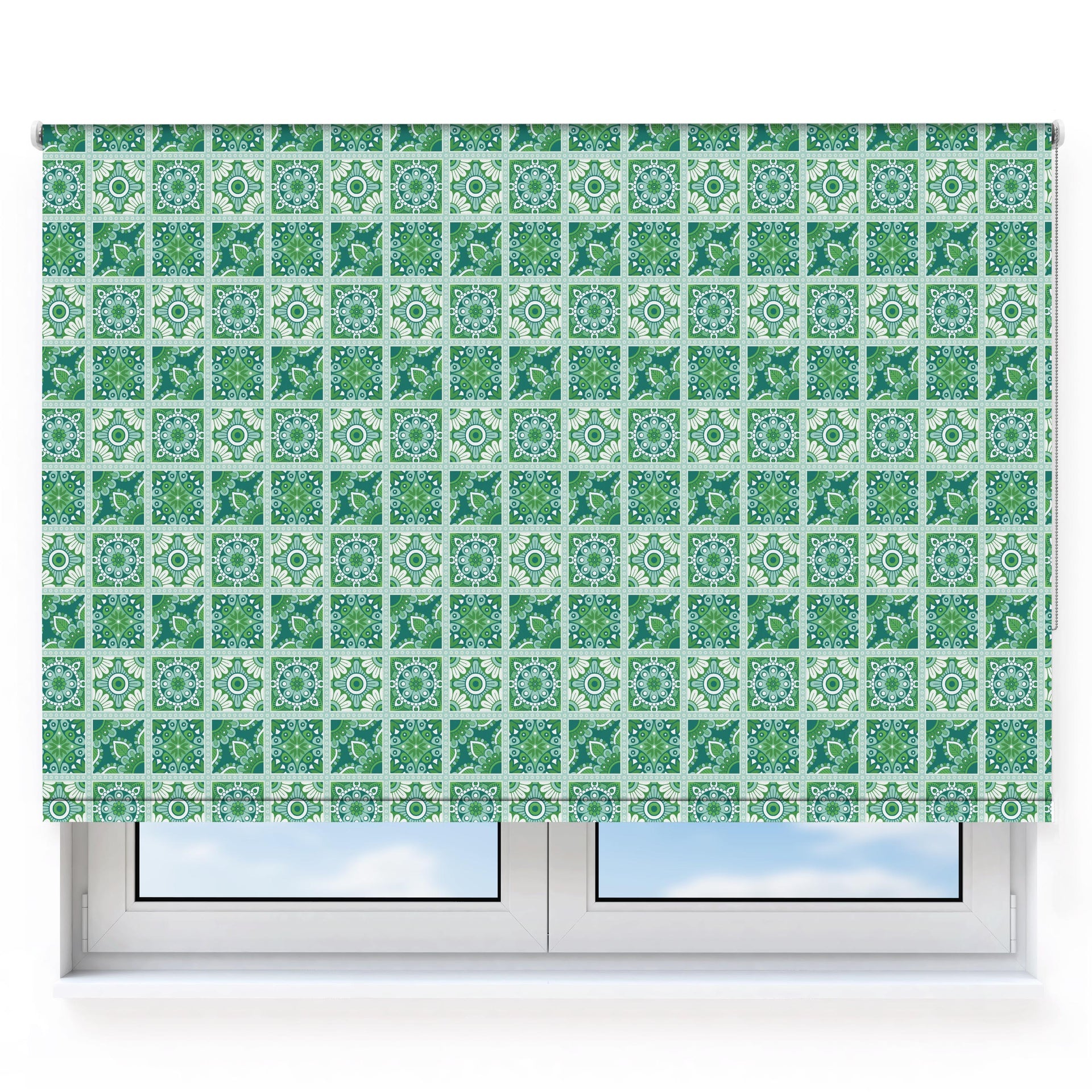 Boho Eyes Greens Pattern, Moroccan Tiles Roller Blind [208]