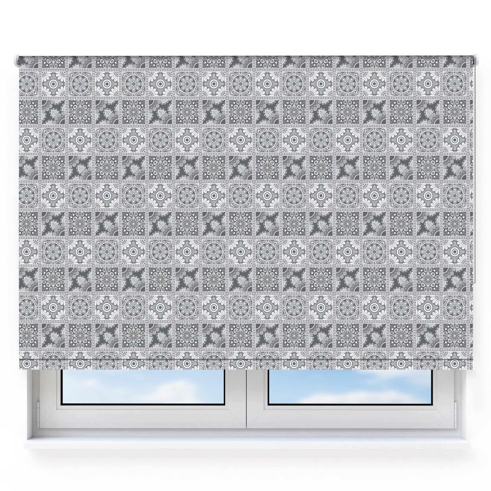 Boho Eyes Greys Pattern, Moroccan Tiles Roller Blind [211]