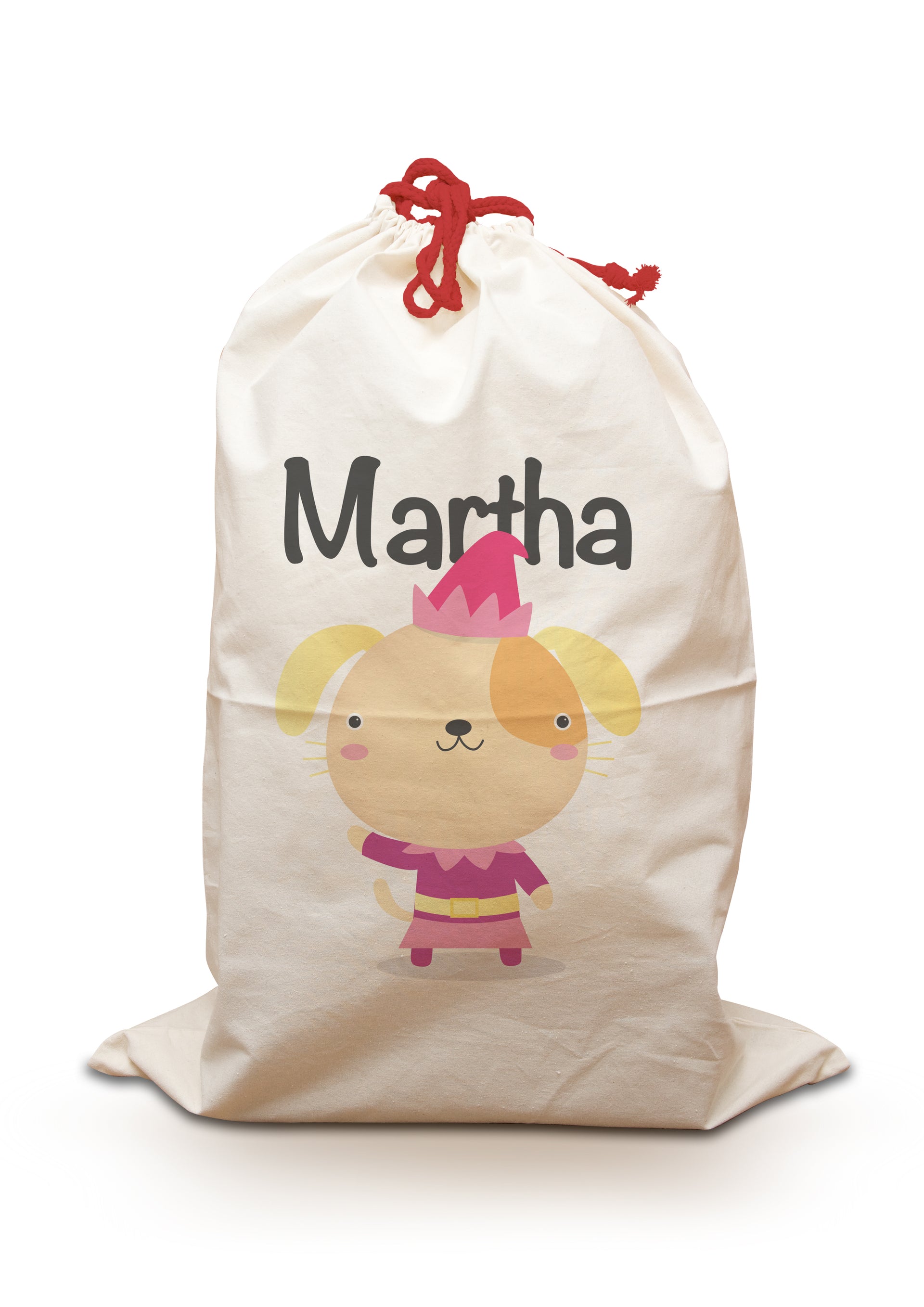 Cute Christmas Dog Elf Character! Personalised Santa Sack from the North Pole!