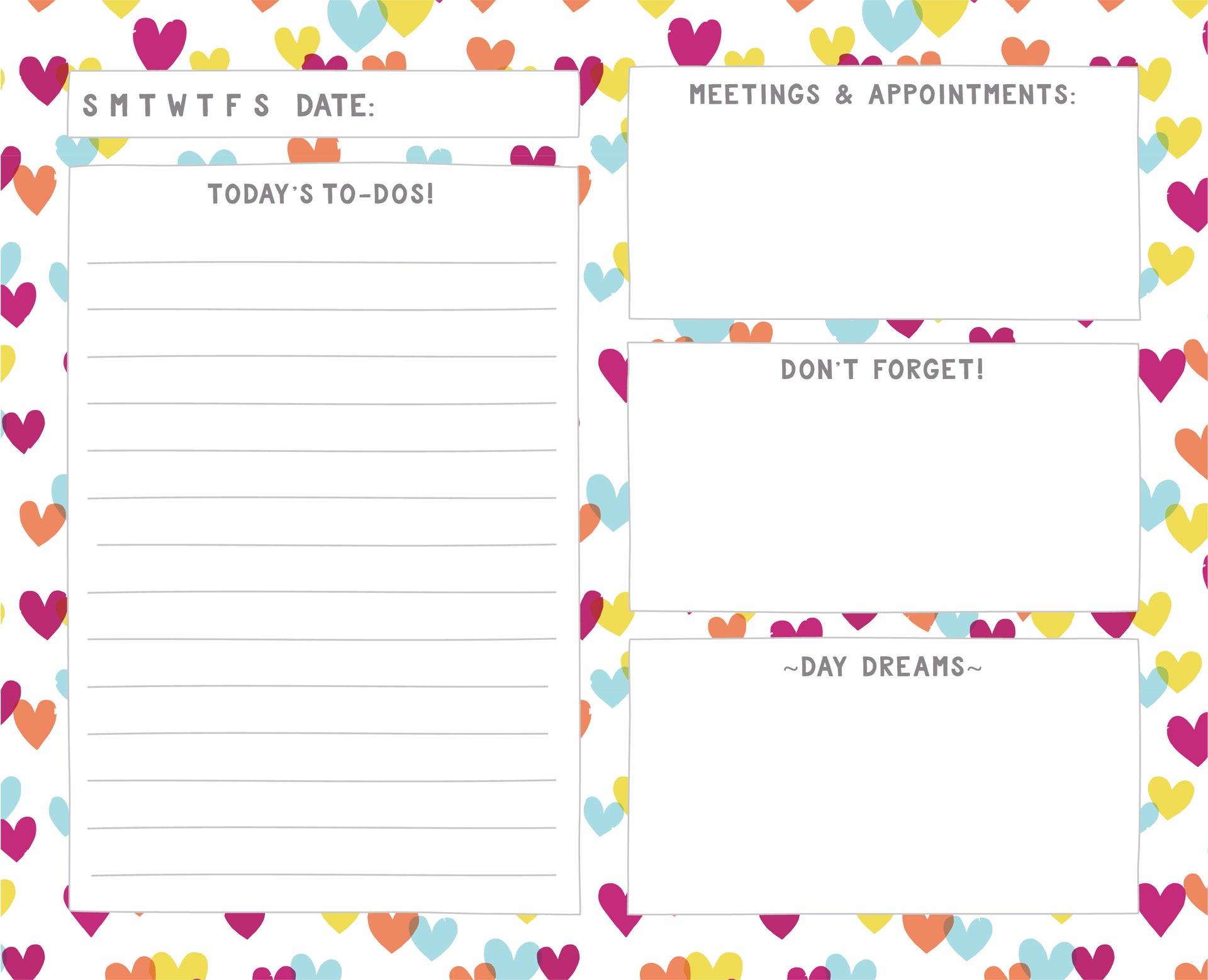 Day Schedule Organiser, Confetti Hearts Pattern.