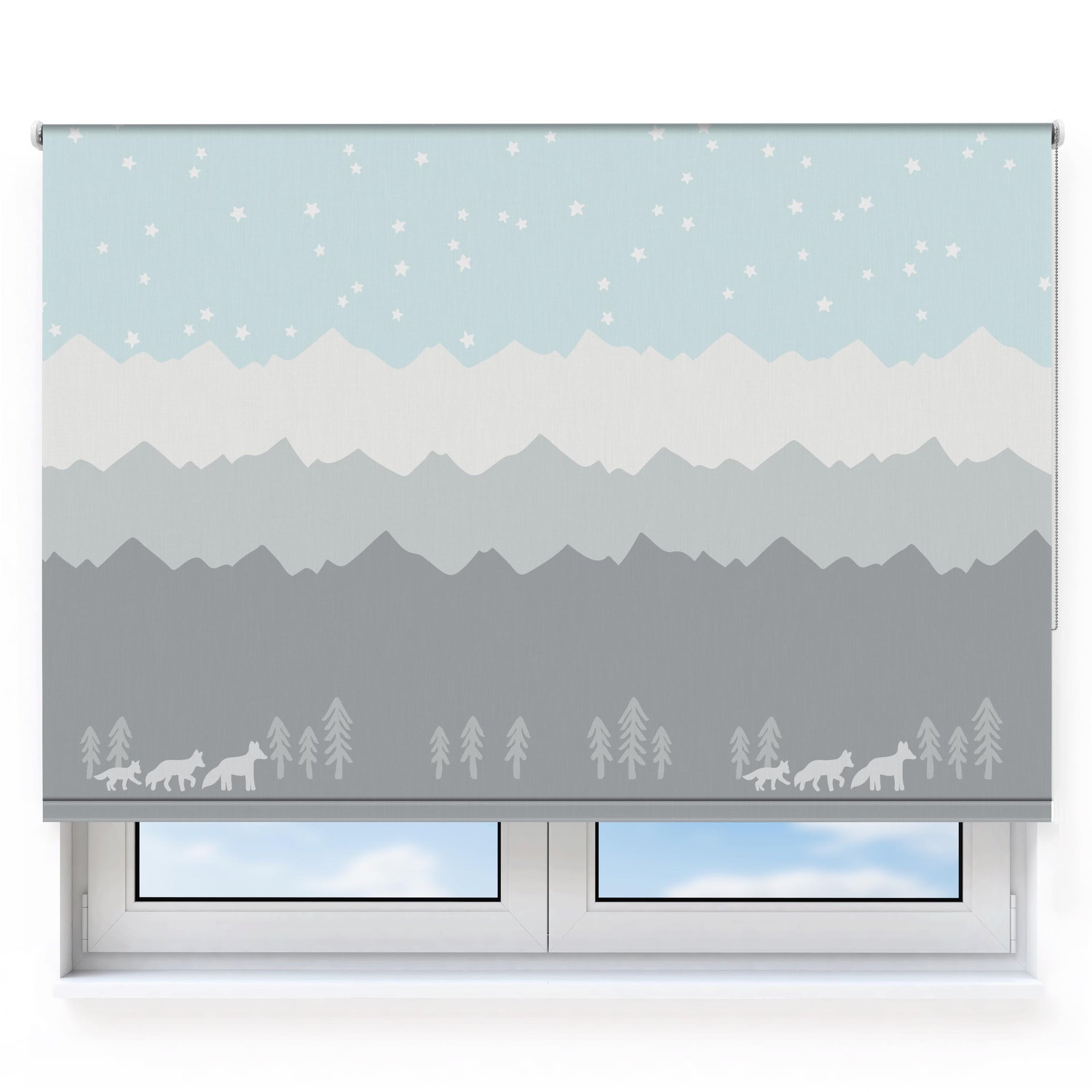 Fox & Mountains Light Blue Roller Blind [525]