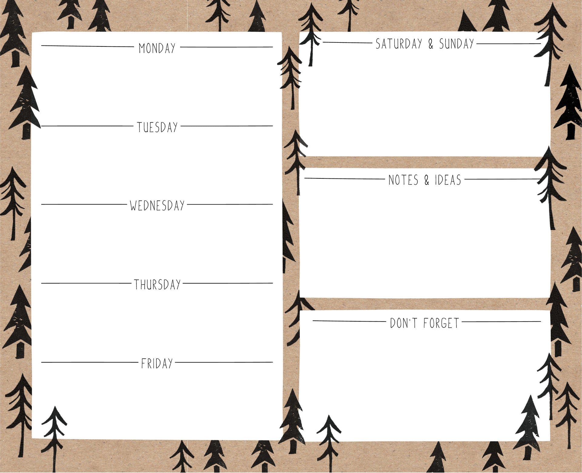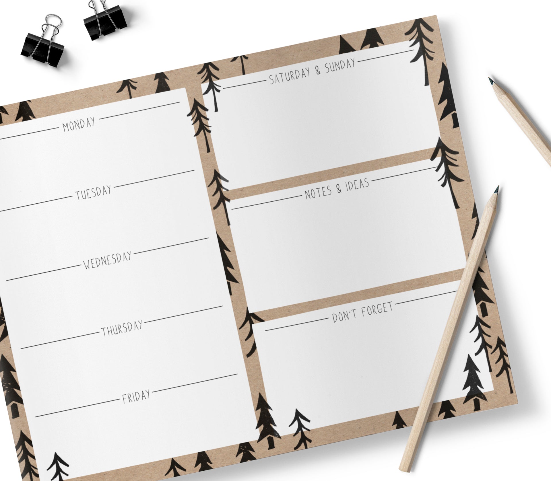Weekly Planner, Printed Pine Trees.