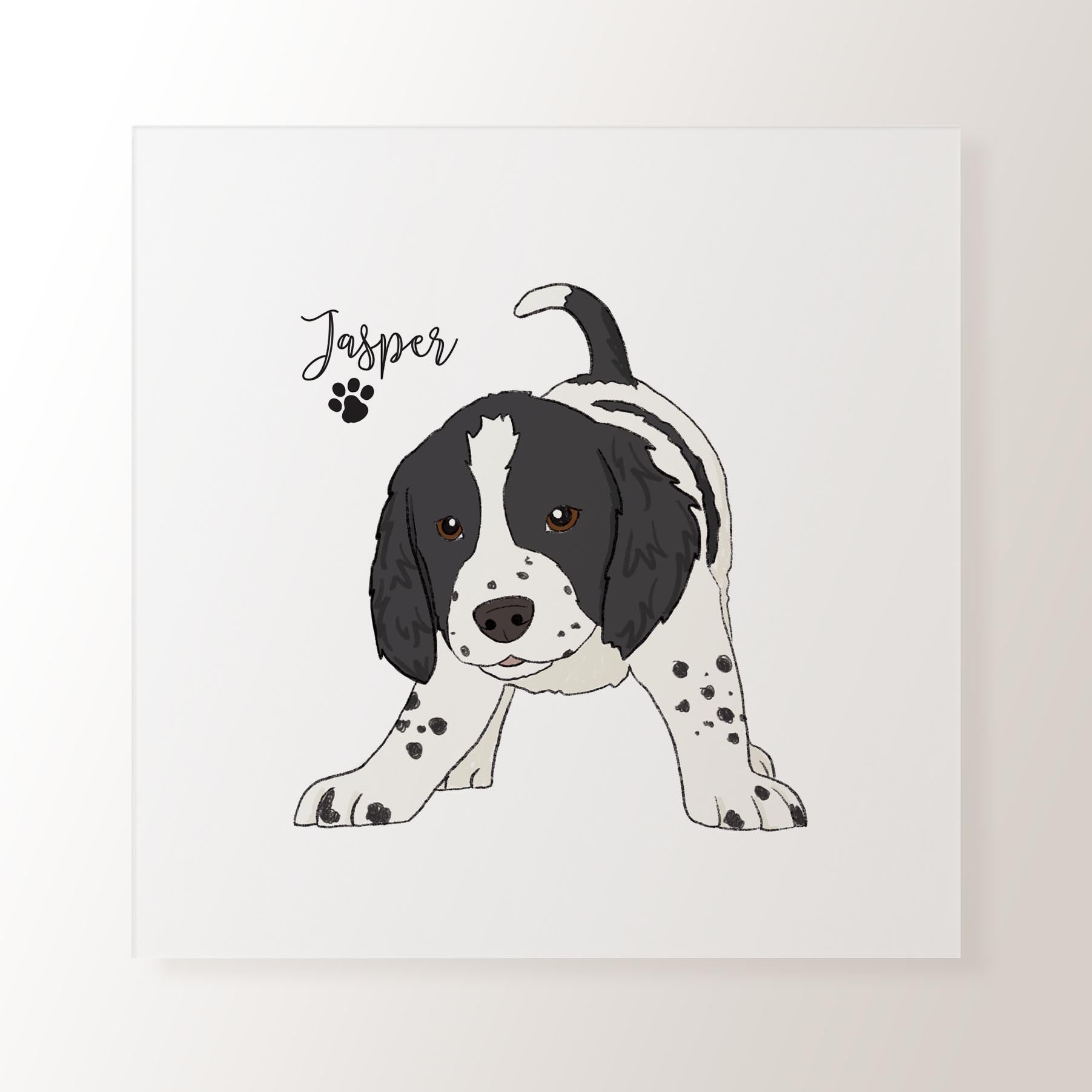Personalised Black & White Springer Spaniel Pup - Art Print