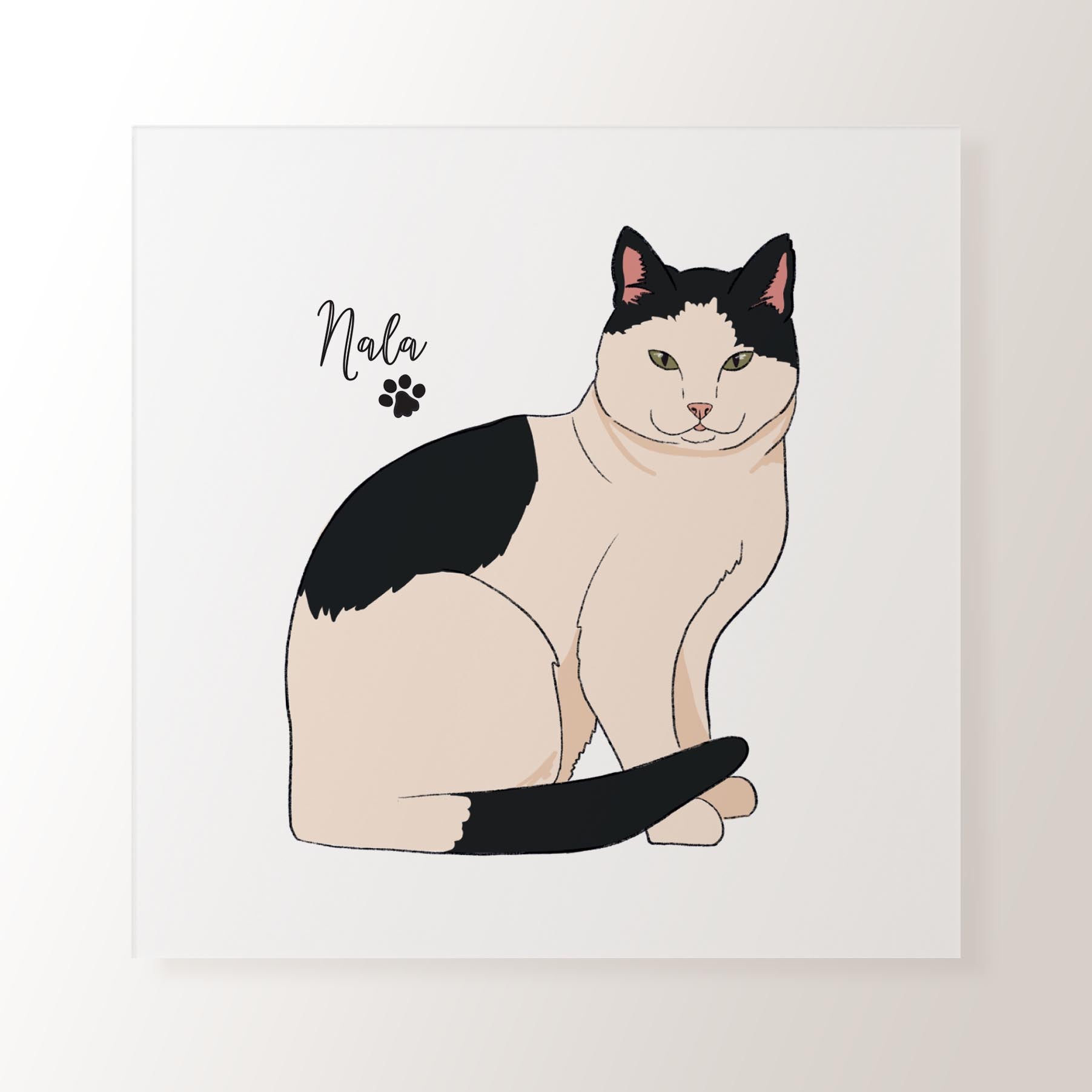 Personalised White & Black Cat - Art Print