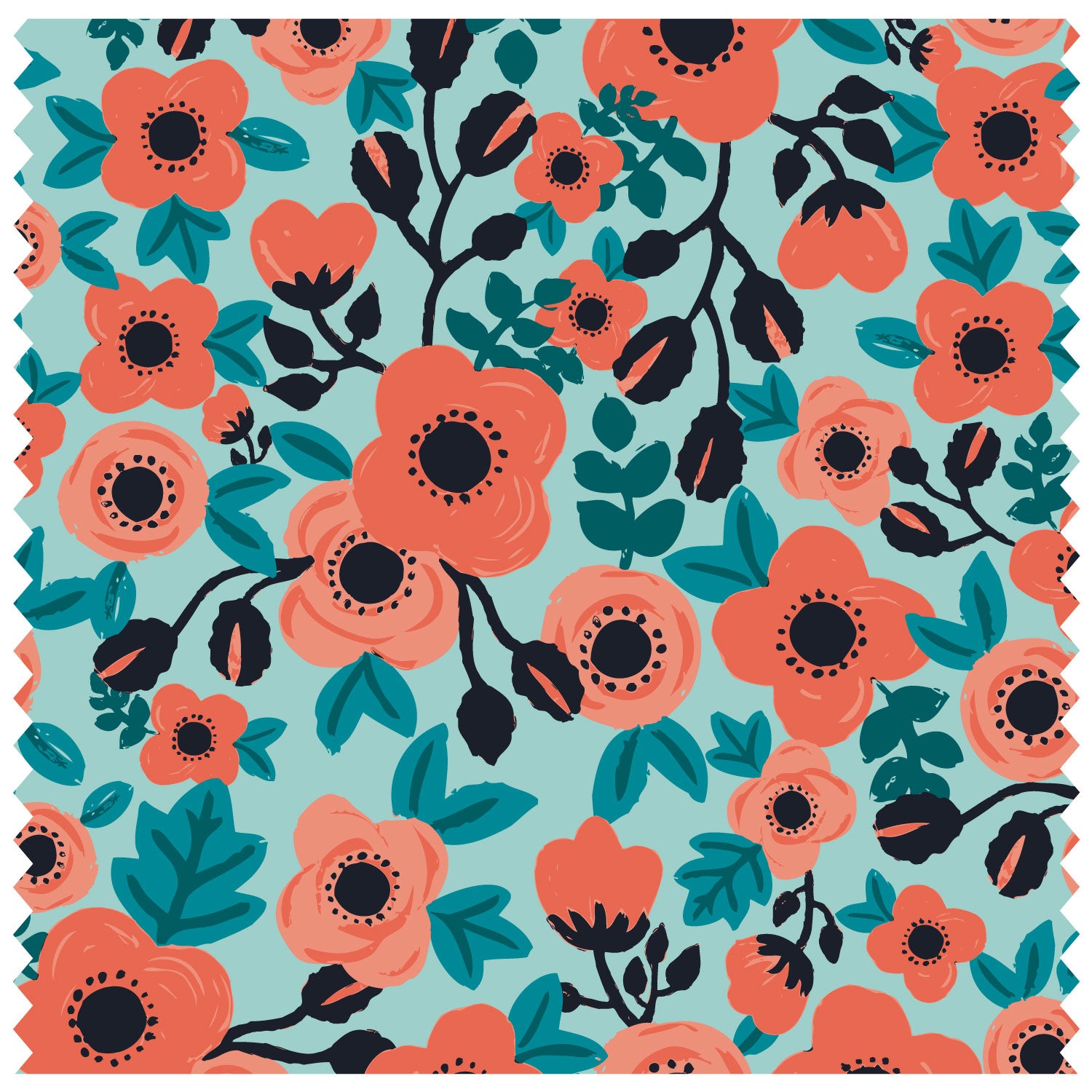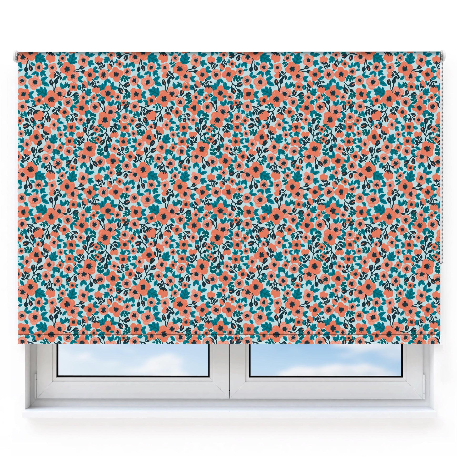 Poppies & Roses Coral & Green Roller Blind [174]