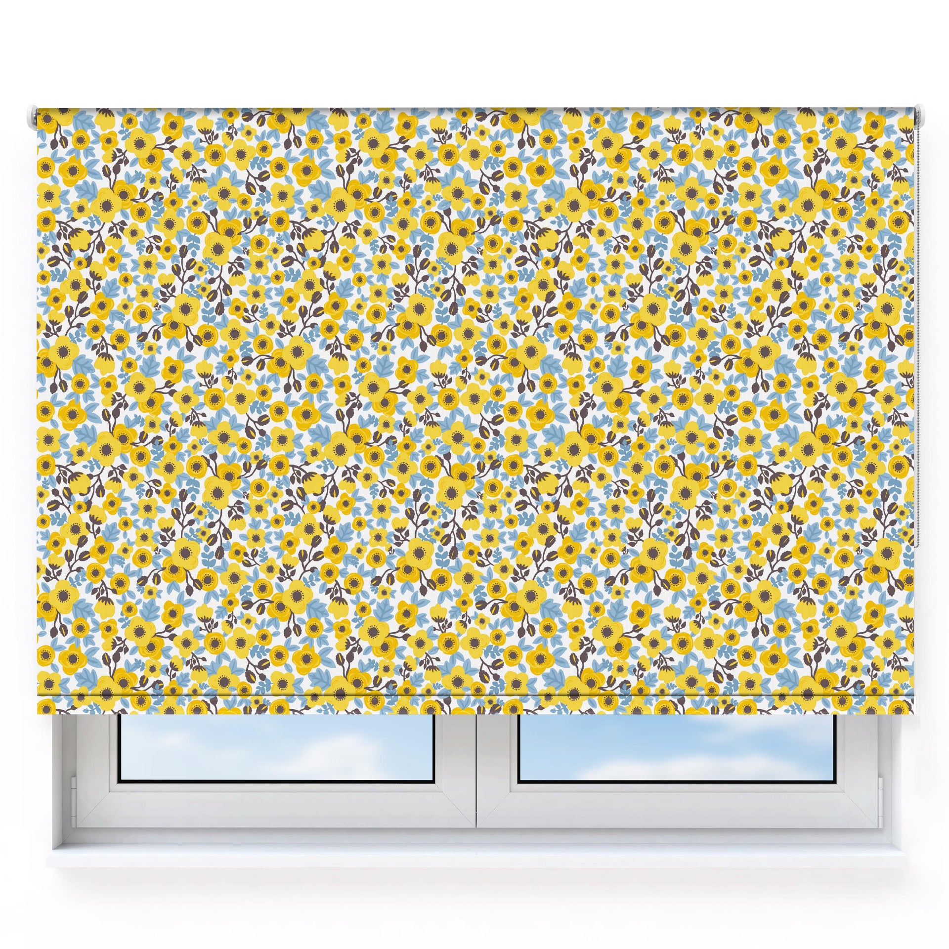 Poppies & Roses Yellow & Blue Roller Blind [178]