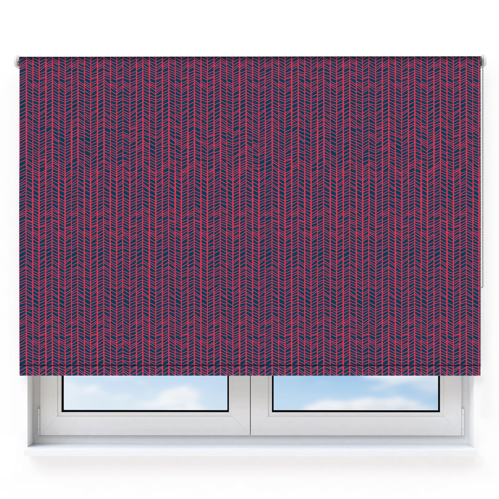 Rough Herringbone Coral & Blue Roller Blind [1048]