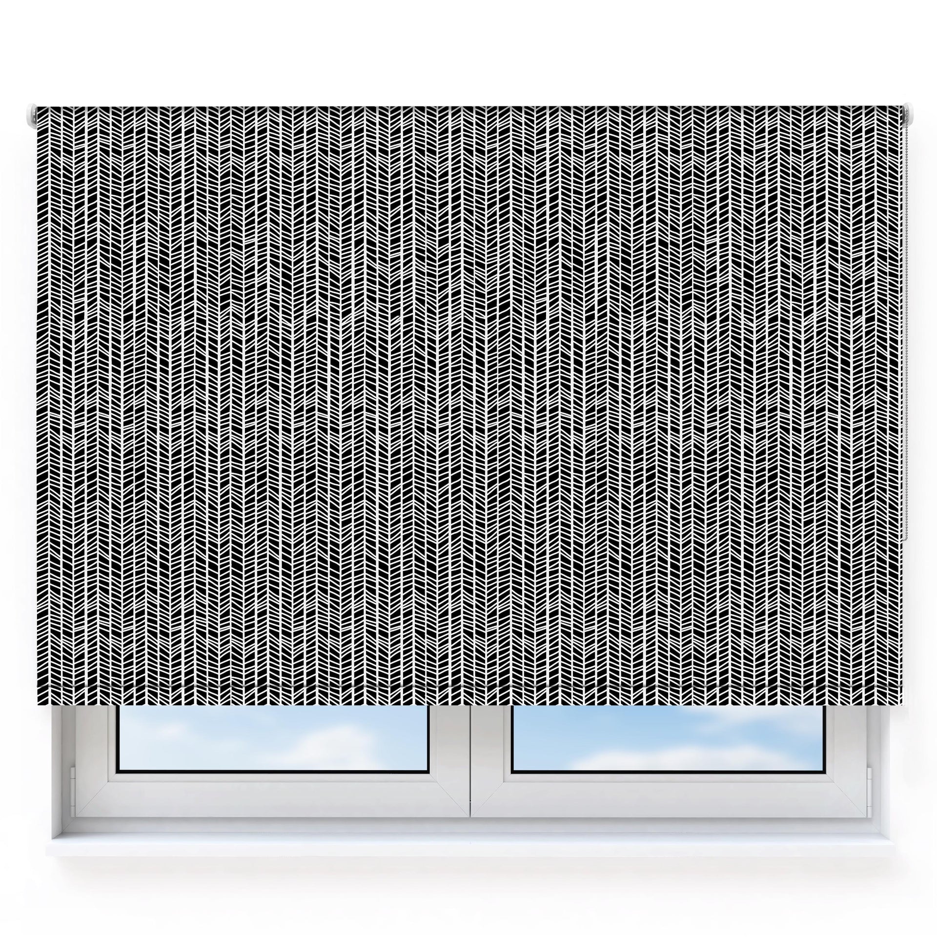 Rough Herringbone White & Black Roller Blind [1044]