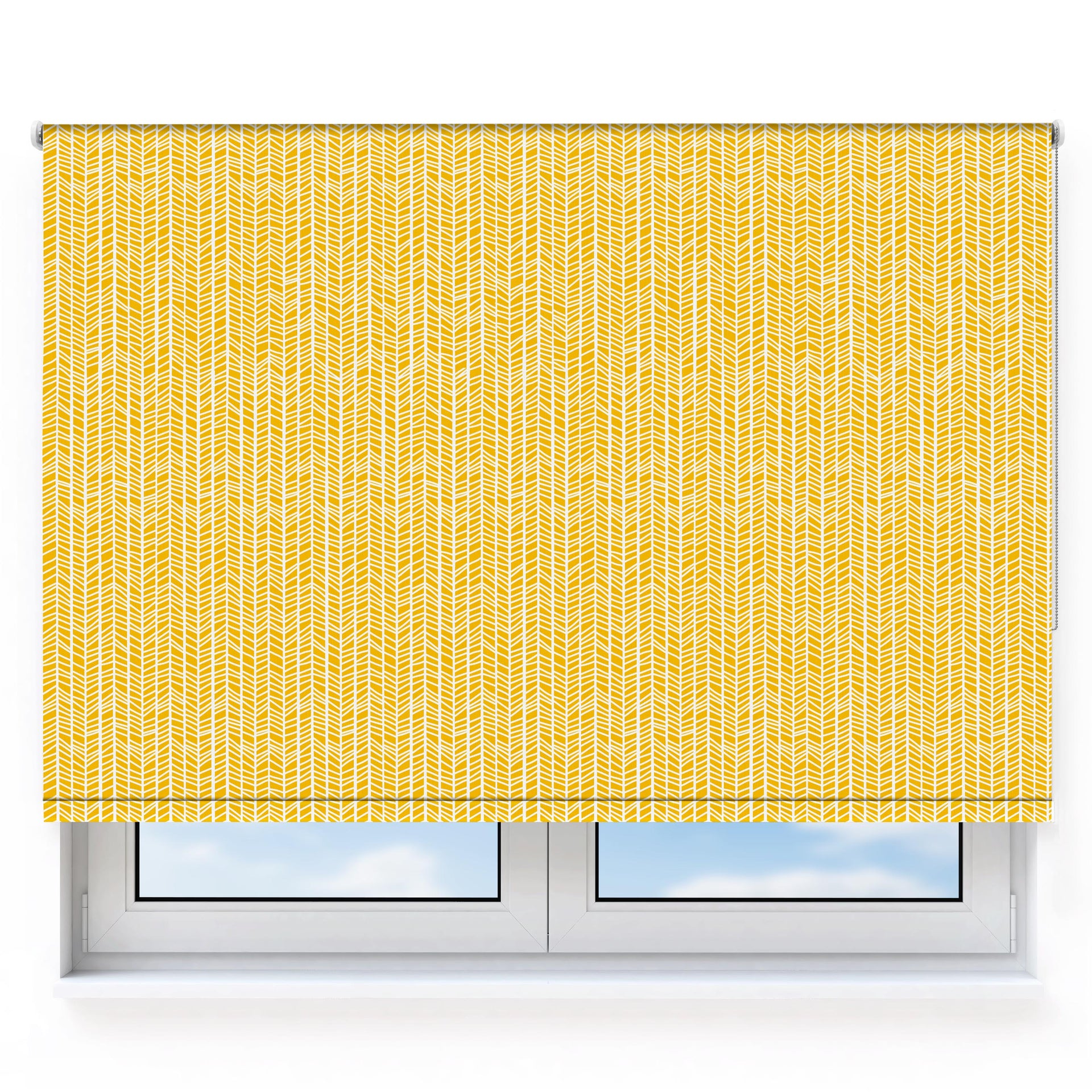 Rough Herringbone White & Yellow Roller Blind [1043]