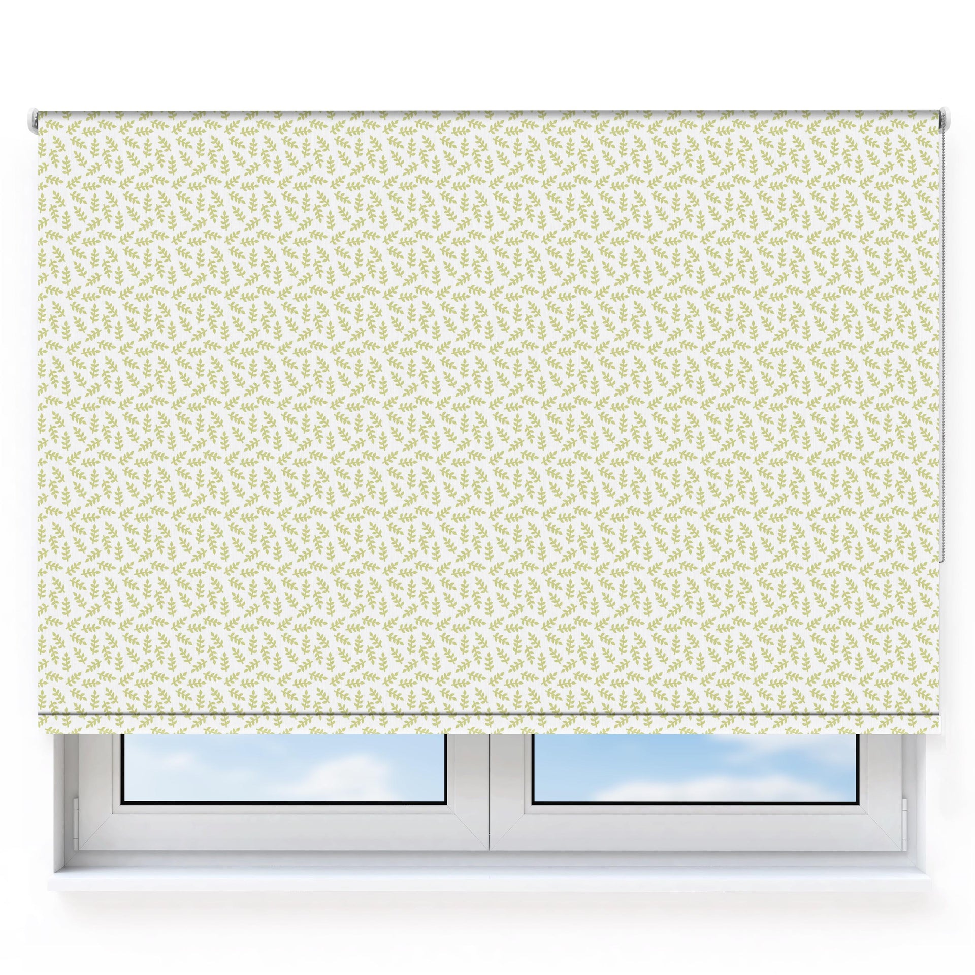 Scattered Leaves Green on White Roller Blind [187]