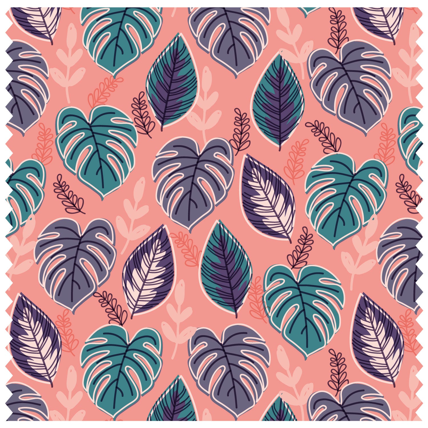 Tropical Leaves Coral Roller Blind [340]