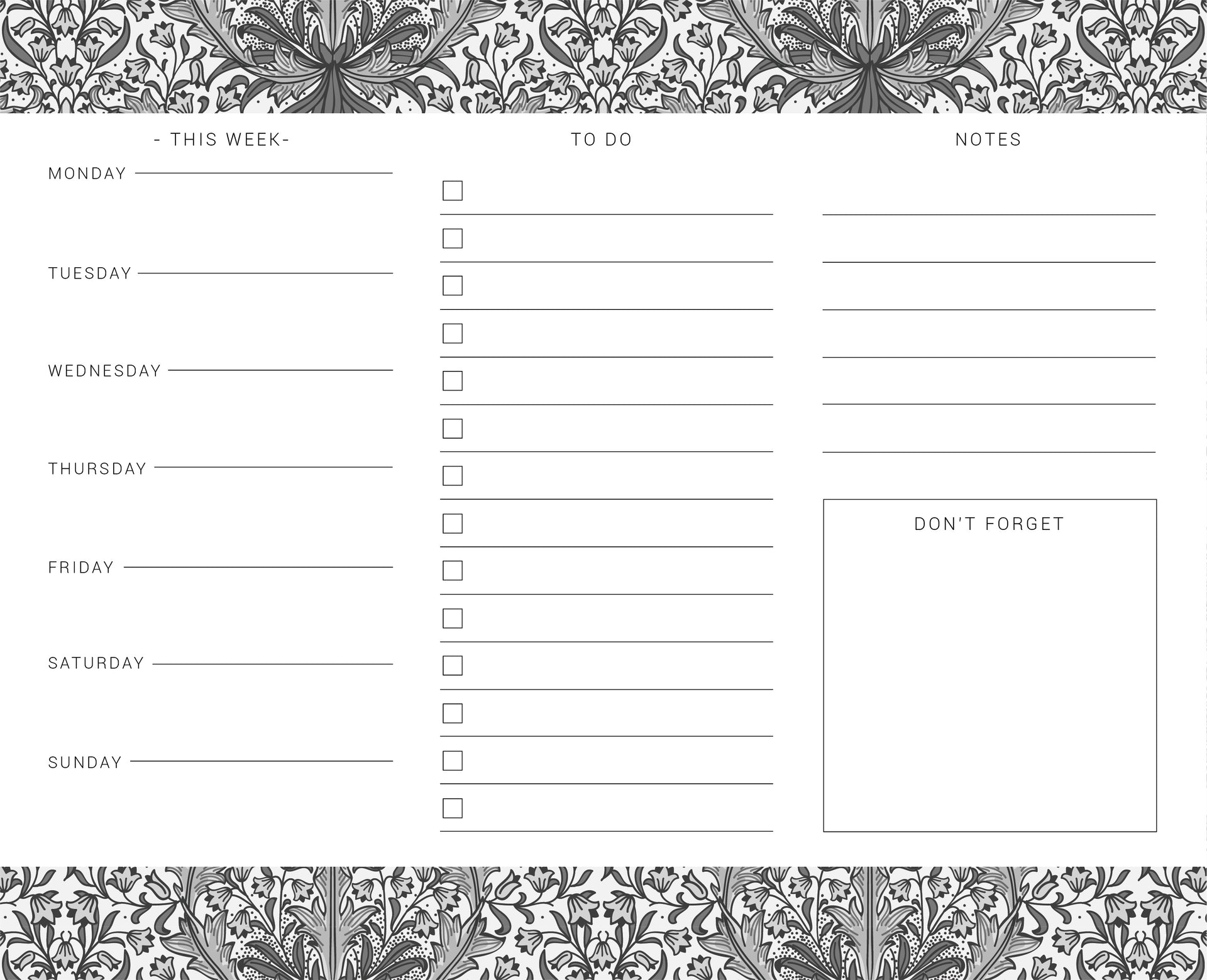 Week Planner & Organiser, William Morris Pattern.
