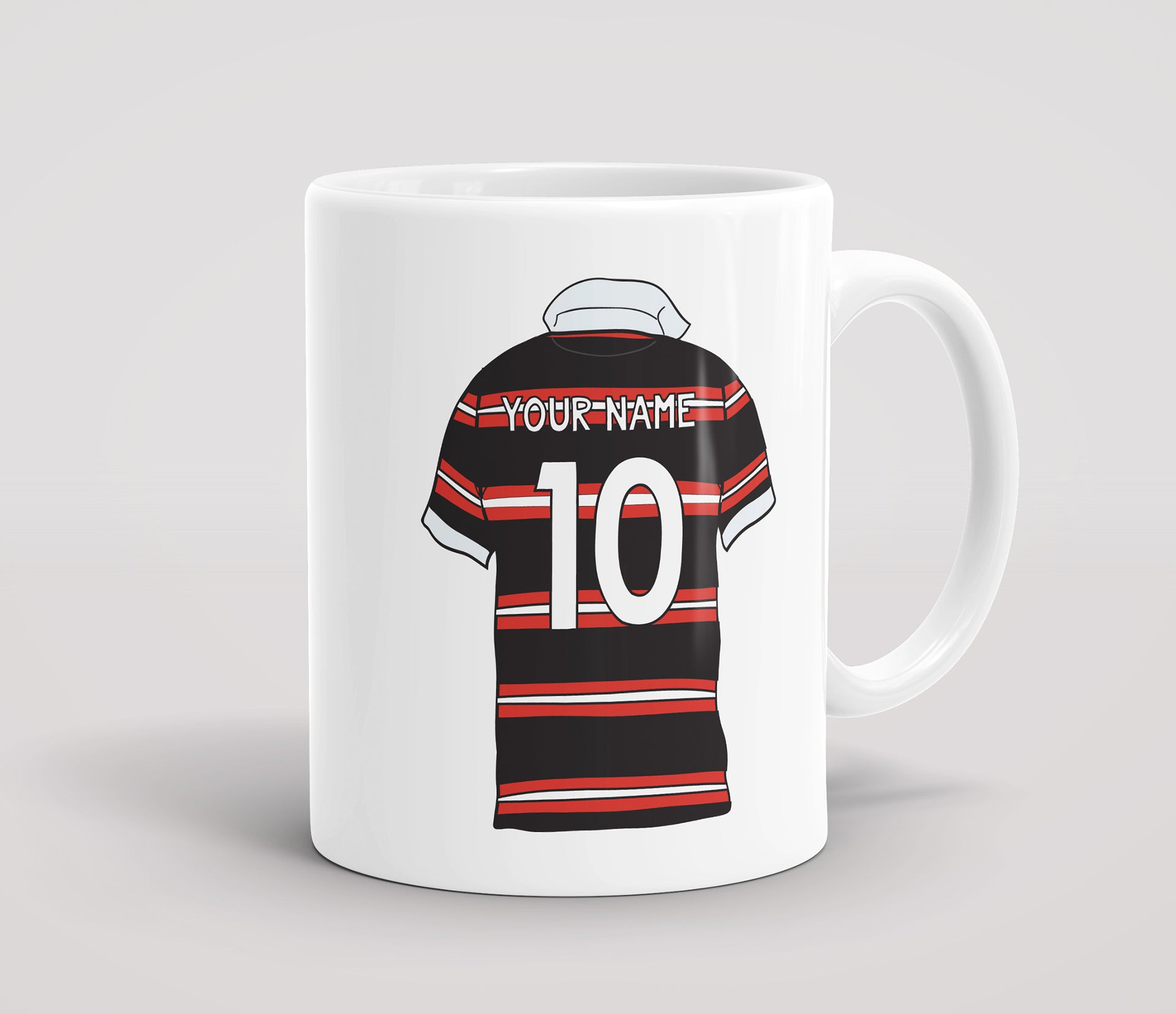 Whether you love watching it, playing it or maybe just talking about it, make sure you show off your favourite team with our Personalised Rugby Shirt mug!