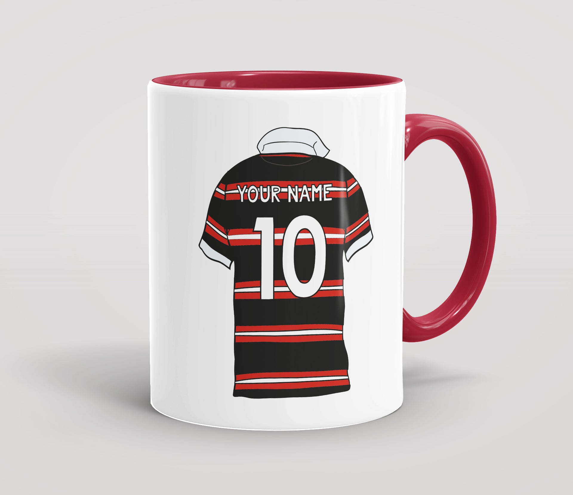 Personalised Rugby Shirt Black & Red - Mug