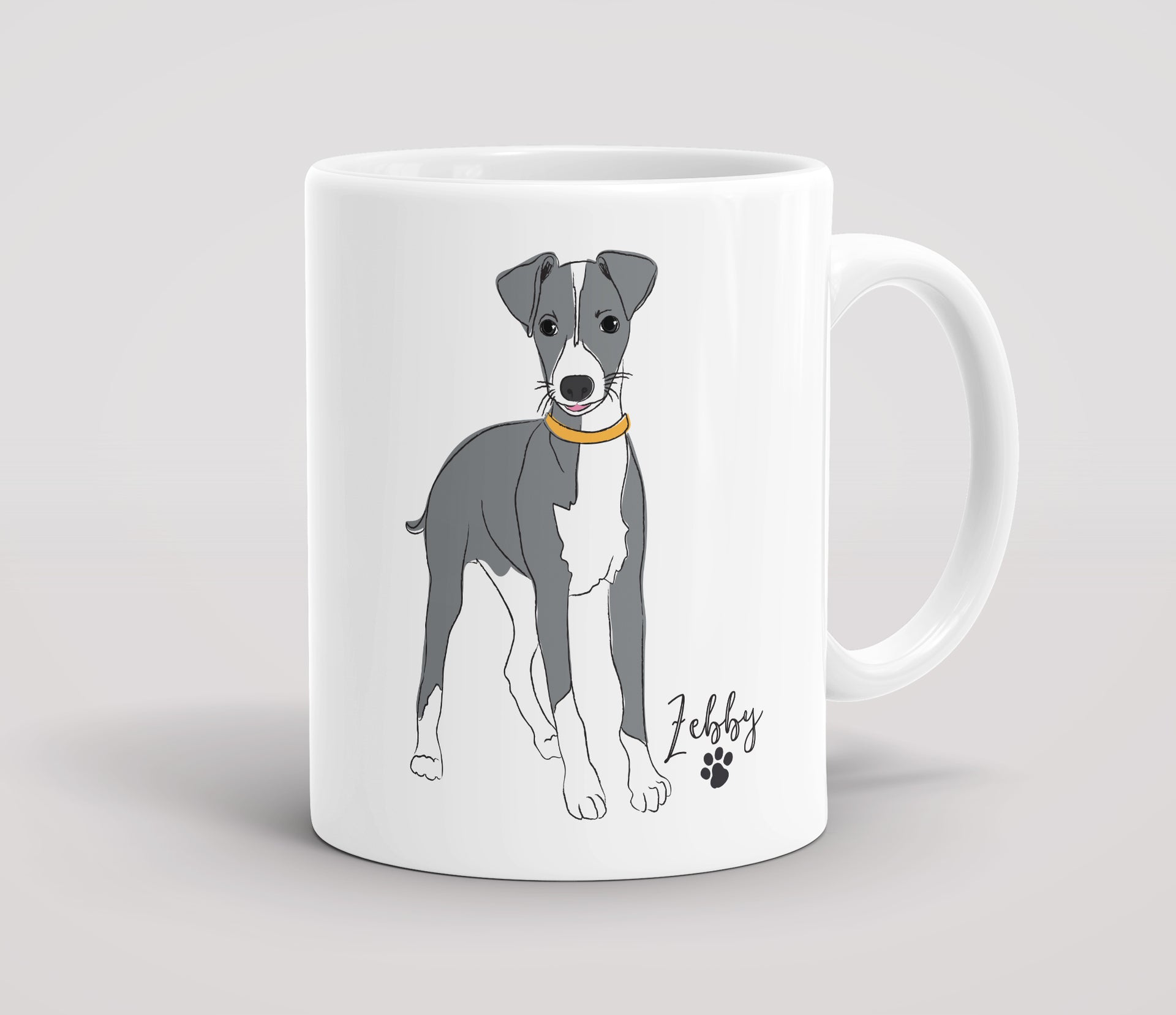 Personalised Grey & White Whippet - Mug