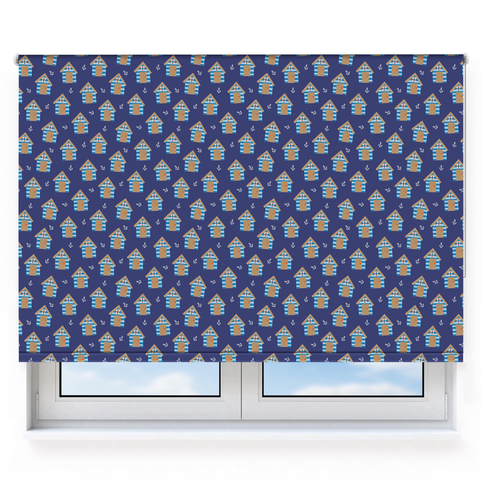 Blue Beach Huts Navy Roller Blind [217]