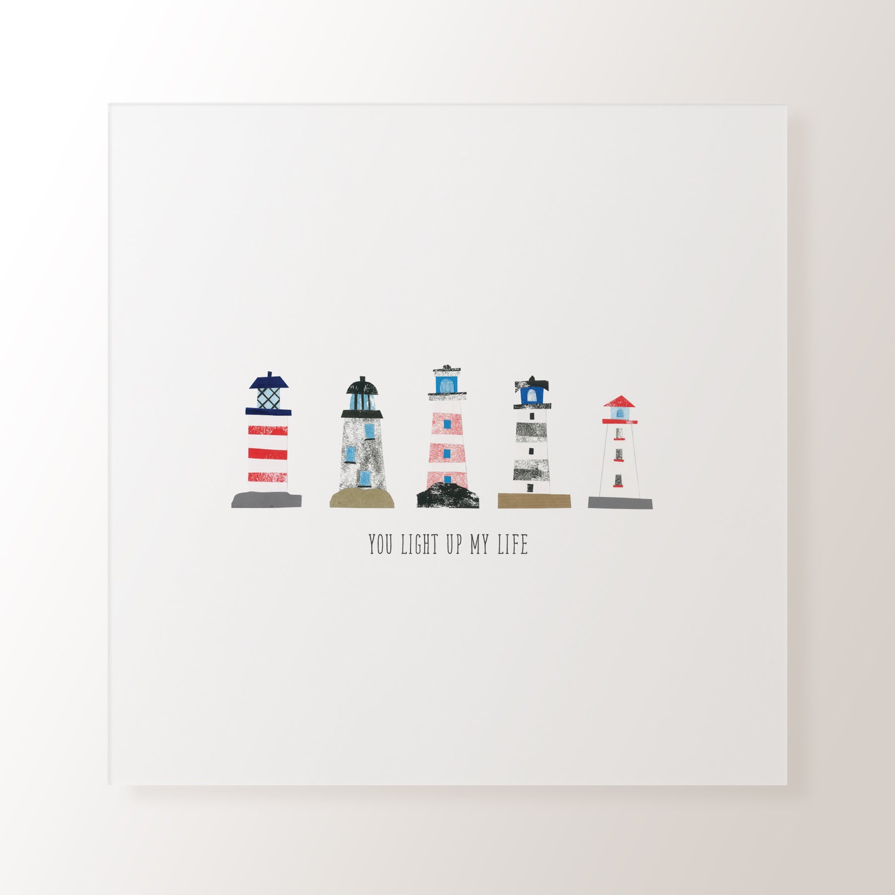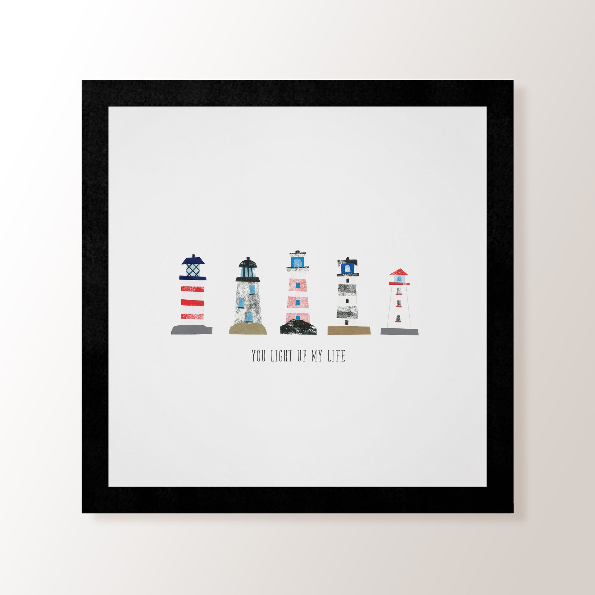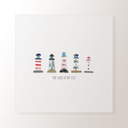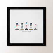 Get a real feel for the seaside with this collaged light houses print! Perfect for any bathroom, bedroom or kitchen- this design is an ideal present for any new home owners or if you're decorating yourself!